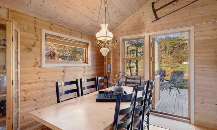 Flott hytte beliggende på en imponerende opparbeidet tomt. Her kan du nyte både naturen og en elegant utforming i skjønn forening. Mulighet for båtplass i nærheten.