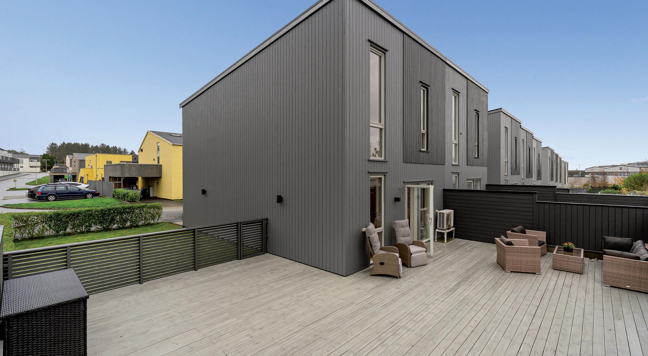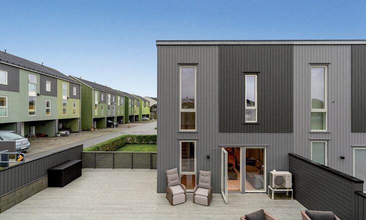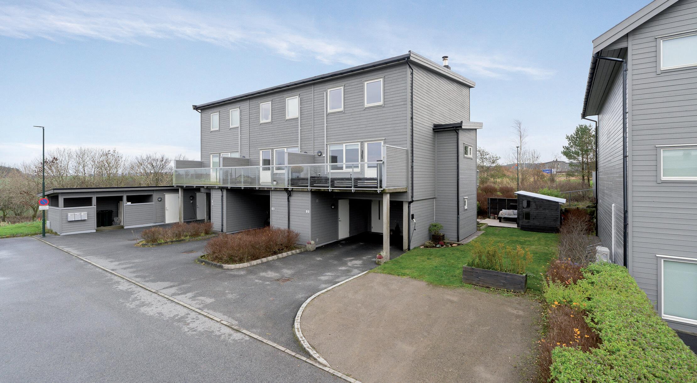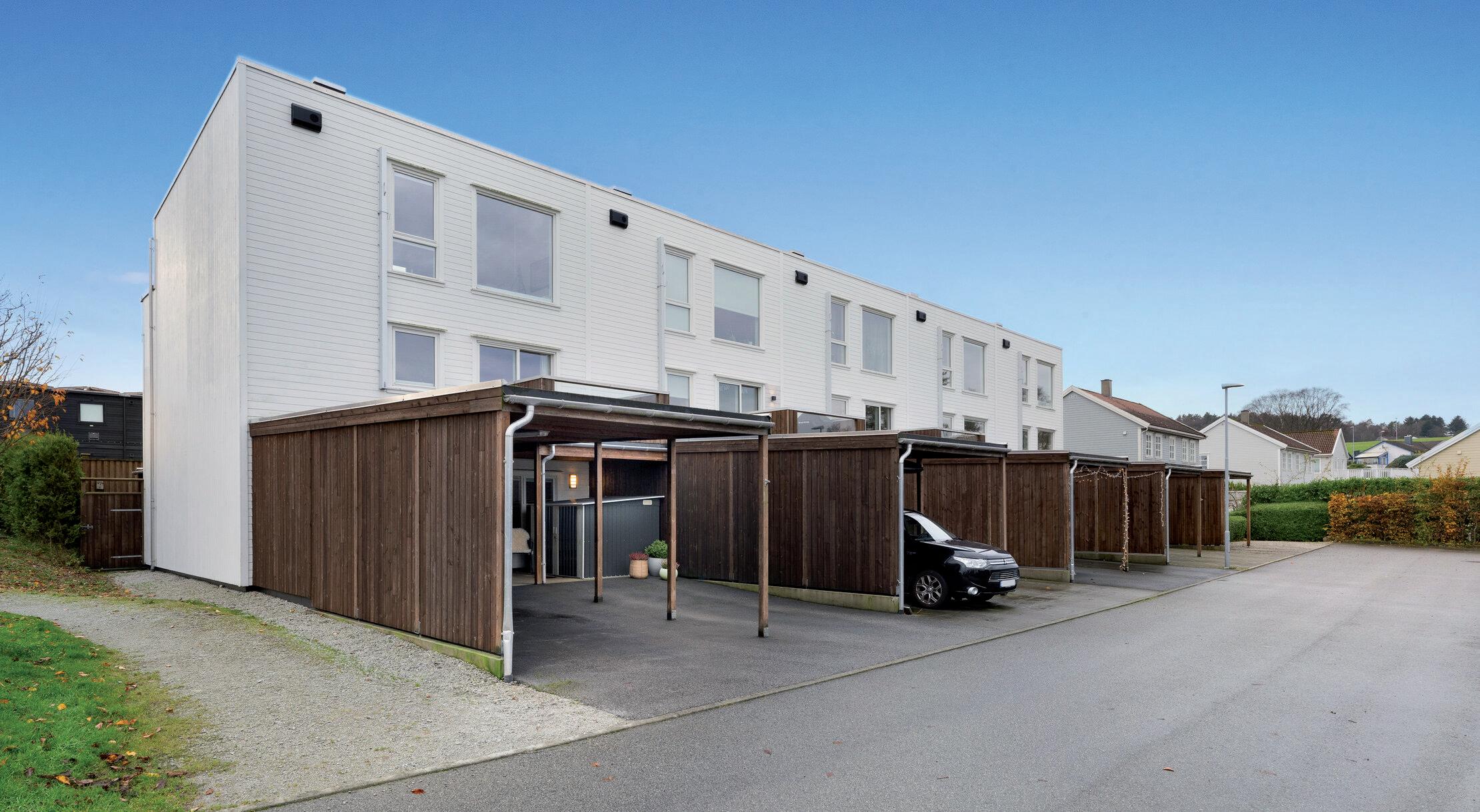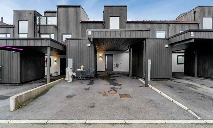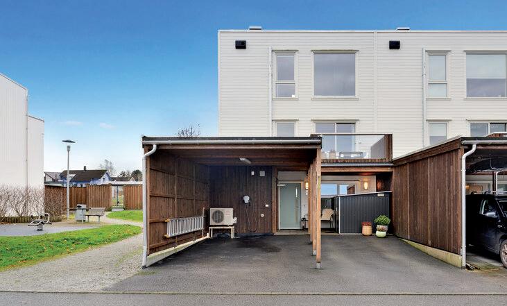 Moderne rekkehus fra 2021, med carport, elbillader og stor terrasse. 2 bad og 3 soverom. Sentralt og meget barnevennlig