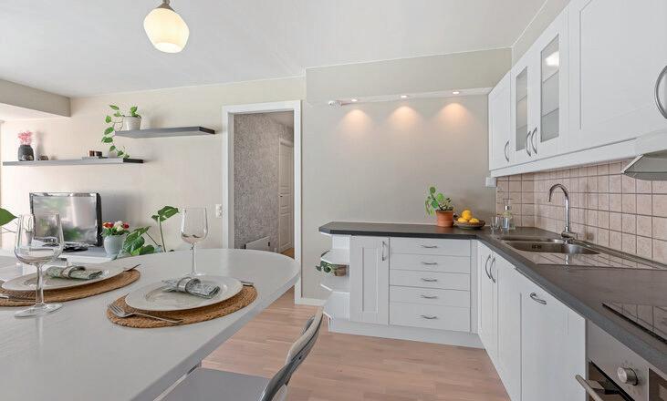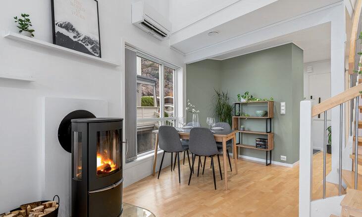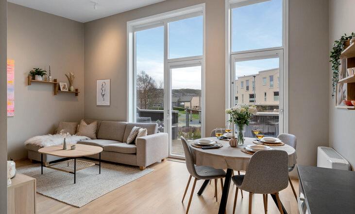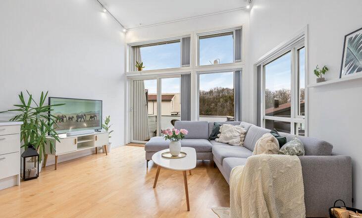 En leilighet der arealet er maksimalt utnyttet og man får "rekkehusfølelse". Her er det praktiske løsninger og rom med god størrelse. Boligen kan passe flere ulike kjøpere i forskjellige livssituasjoner.
