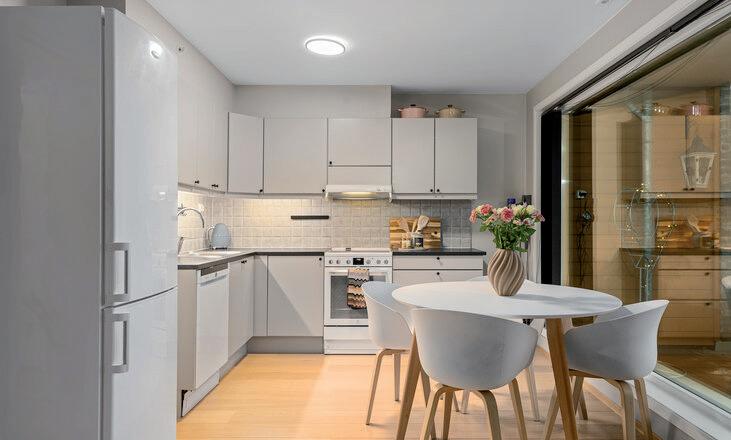 - Romslig og stilrent HTH-kjøkken med hvitevarer fra Miele