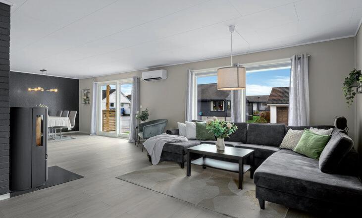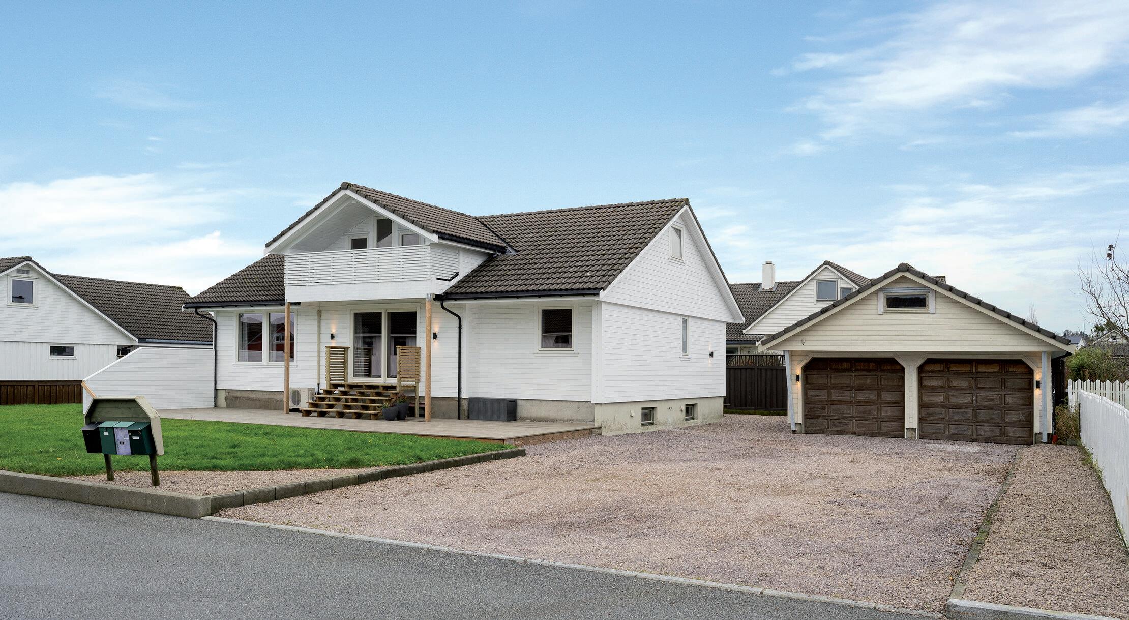 Boligen er praktisk utformet over to plan med god plass til hele familien. Hele 5 soverom i denne boligen gir god plass til en stor familie. Dobbel garasje med stort lagringsloft og gode parkeringsmuligheter sørger for enkel og praktisk hverdag.: