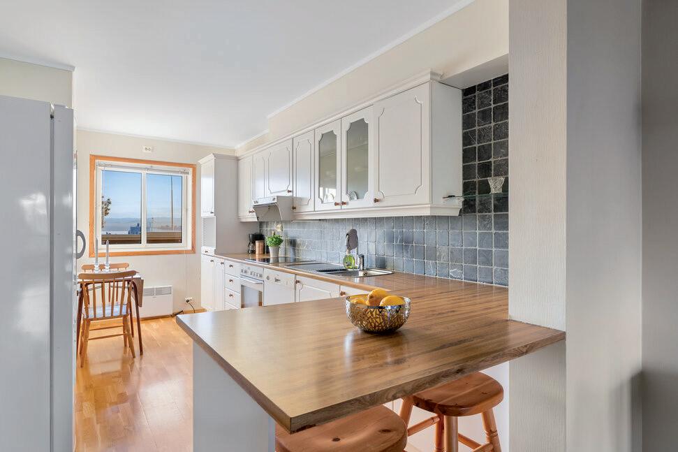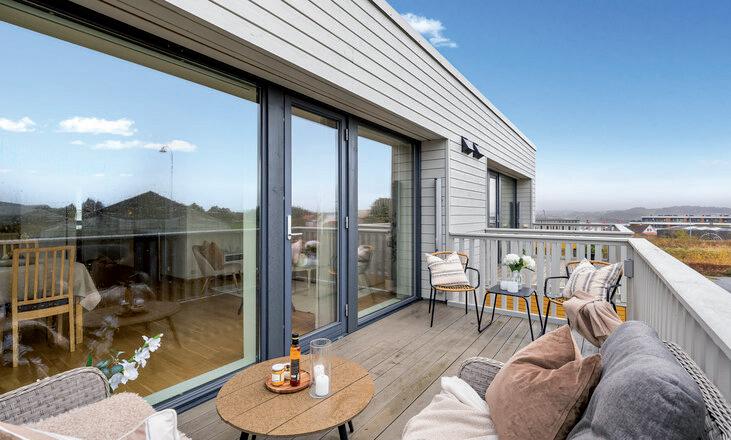 - Parkering og bod i lukket garasjeanlegg - Balkong på 14 kvm med flott utsikt og gode solforhold