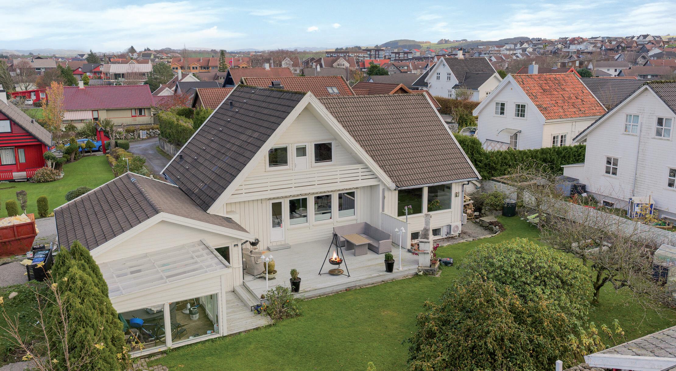 Kvaliteter som kan nevnes er komplette etg m/stuer, soverom og bad i begge. Tidløst og kvalitetsdesign fra Unoform kjøkken. Fin flyt ut i egen hage og til store terrasser hvor du kan møblere for enhver anledning. Solrikt, skjermet komplett opparbeidet tomt.