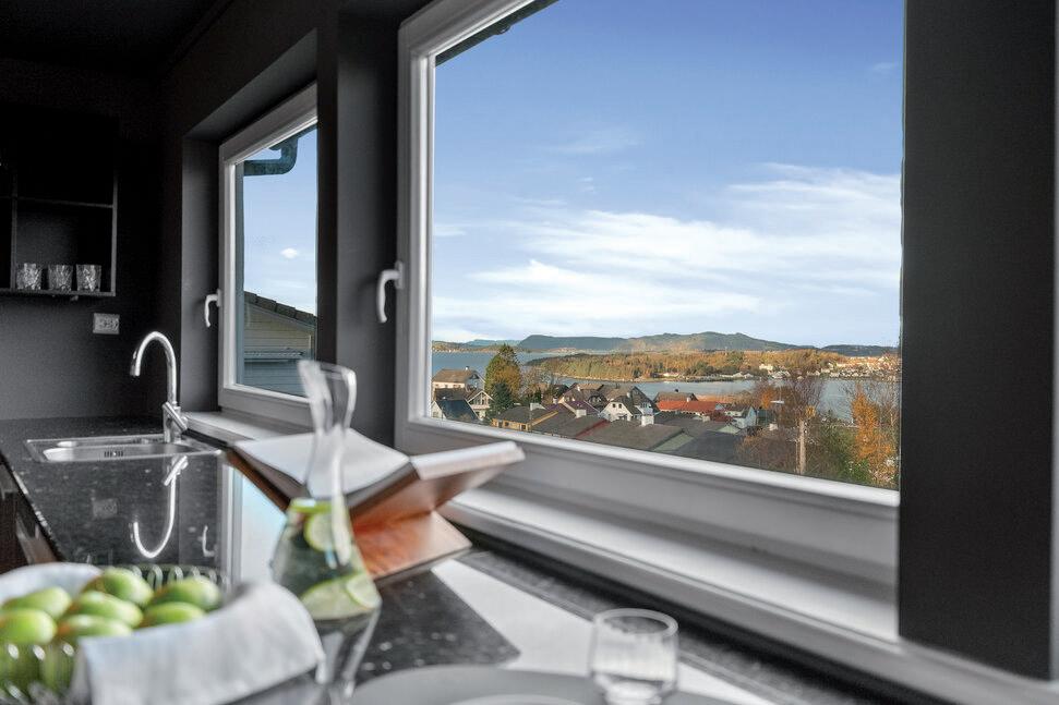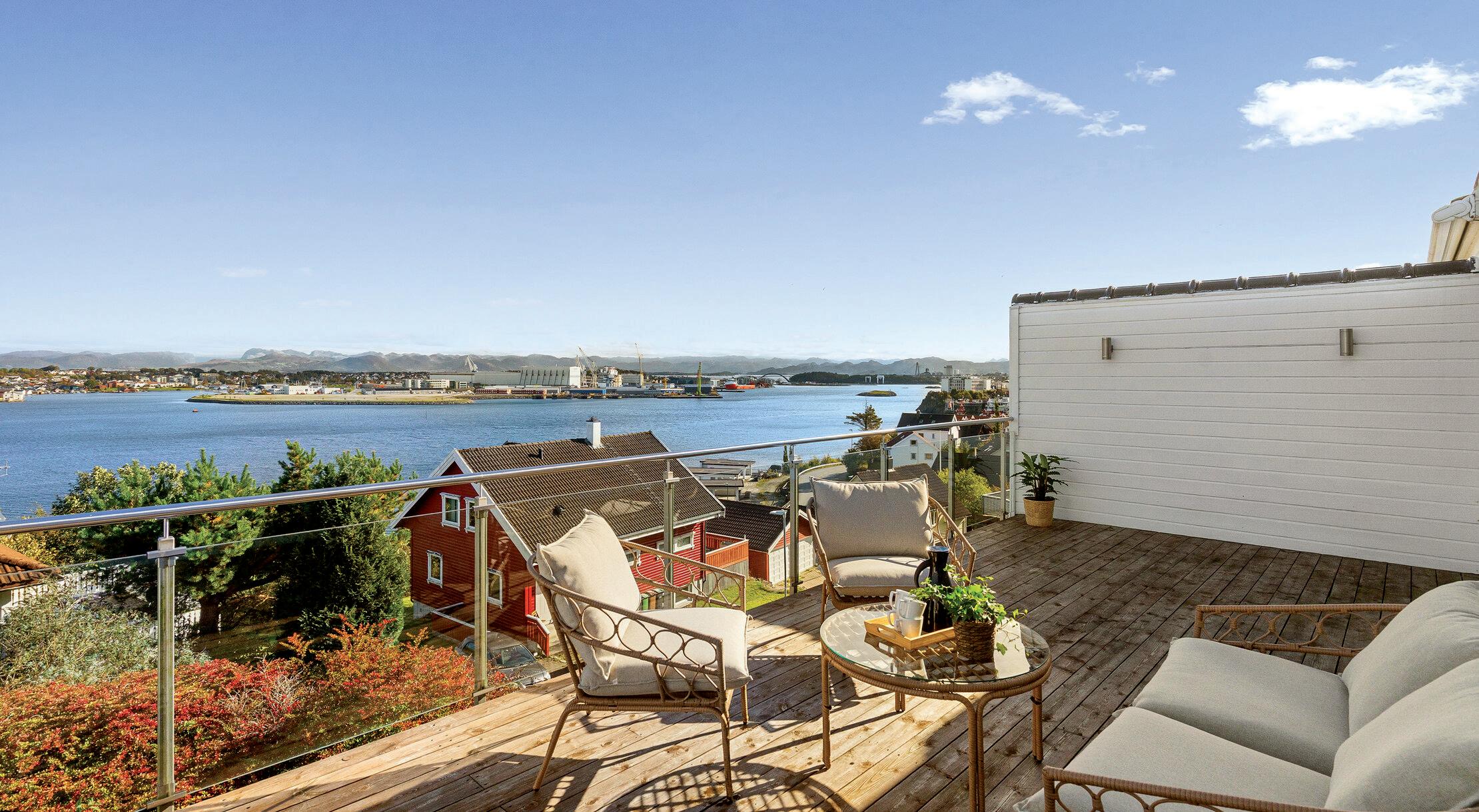 Sol, fjord og by. Høy standard, romslig uteplass og smart, funksjonell løsning. Garasjeplass m/lader. Bygget er en del av Rovik brygge med fantastisk beliggenhet rett ved fjorden. Lun og overbygget terrease, med nydelig by- og sjøutsikt.