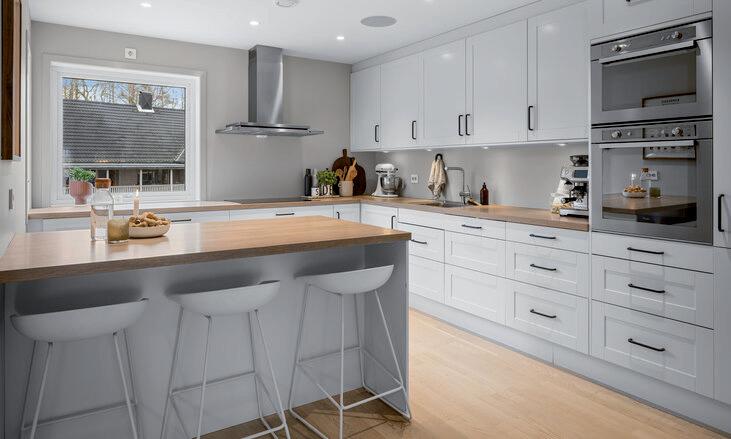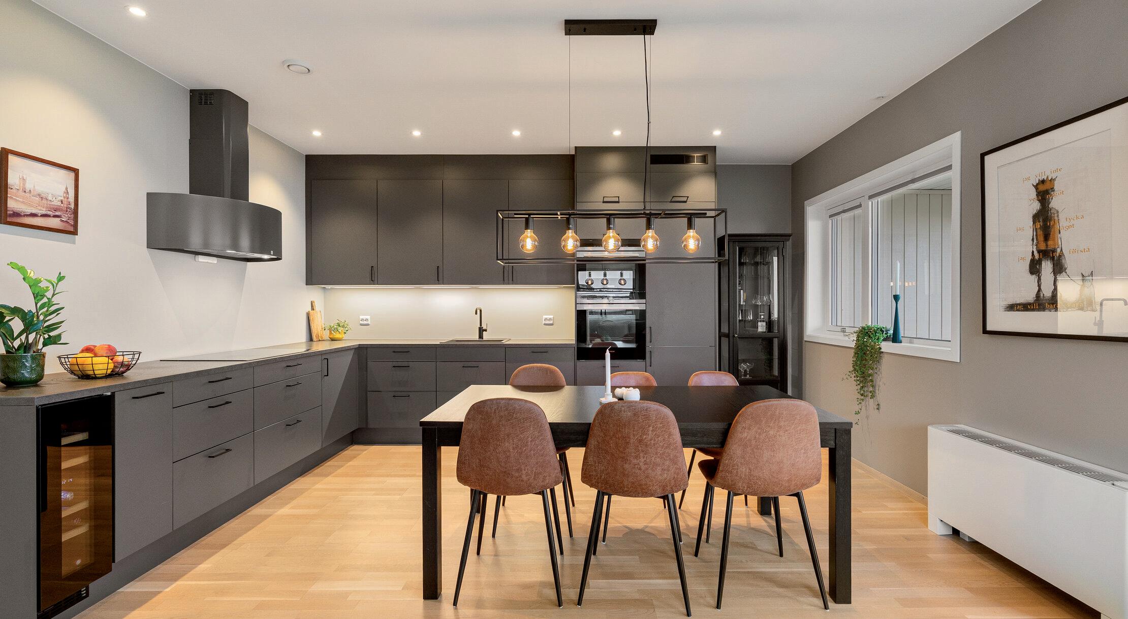 - Deler av kjelleren er innredet som hybel. Den er pr. dd leid ut for kr. 16 000,-Eksklusivt kjøkken fra Aubo med granit benkeplate. Intergrerte hvitevarer fra Siemens. To platetopper med avtrekk, kjølerom integrert vakuumskuff, kjølerom, vinskap, to oppvaskmaskiner, robotstøvsuger integrert i kjøkkenøyen, kaffimaskin, stekeovn og dampovn.