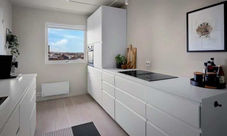 Gjennomgående nyrenovert (2023) og delikat hjørneleilighet m/utsikt og sol. 3 soverom og garasje m/elbillader. Stort, nydelig bad. Prisantydning