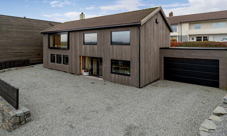 Strøken og modernisert enebolig over to plan. I hovedetasjen har du en fantastisk utsikt! Garasje 49 kvm og parkering i eget gårdsrom. Flott uteområde, med lødd steingard og opparbeidet hage. 5 soverom og flere stuer.