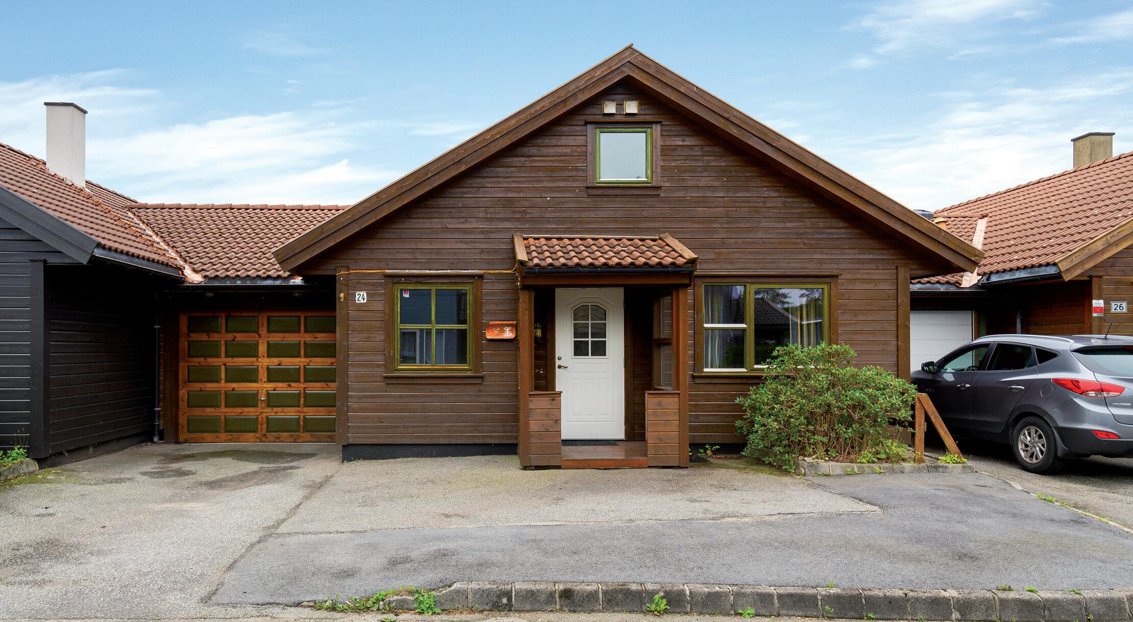 Lettstelt bolig i kjede med alt på ett plan, beliggende i et kjekt og etablert boligområde med gangavstand til det meste en måtte trenge. Garasje. Prisantydning kr 3
