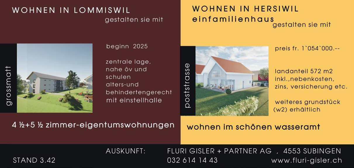 Besuchen Sie uns an der Eigenheimmesse, Solothurn, Stand 3.43 oder in Niederbipp, in unserer einzigartigen Ausstellung.