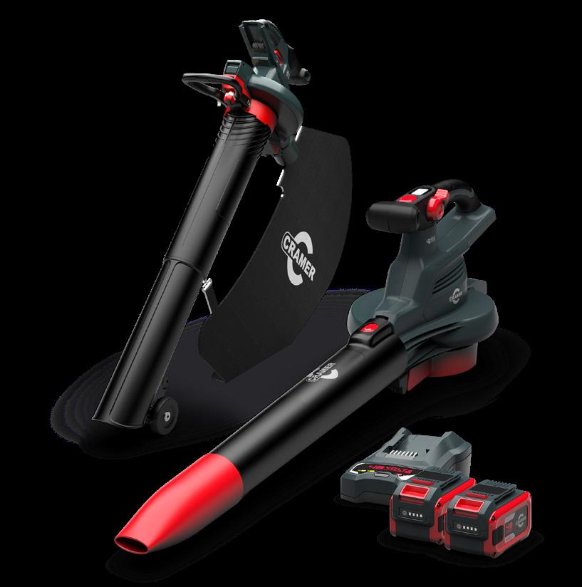 Cramer 48BV800 løvblåser med sugesett/oppsamler er et kraftig og effektivt verktøy som vil gjøre jobben med å holde hagen din ren og ryddig mye enklere. Den børsteløse motoren sørger for lang levetid, mindre støy og vibrasjoner. Pakkeprisen inkluderer 2 stk. batterier 48V192 og lader 48C. Art. nr. 2400886K25