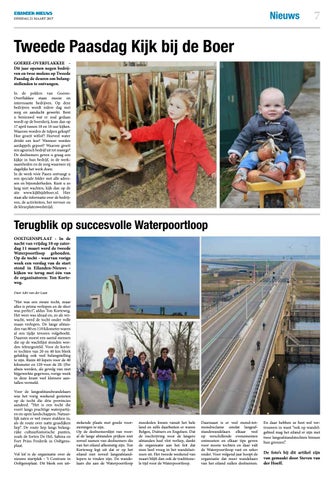 Tweede Paasdag Kijk bij de Boer GOEREE-OVERFLAKKEE Dit jaar openen negen bedrijven en twee molens op Tweede Paasdag de deuren om belangstellenden te ontvangen. In de polders van GoereeOverflakkee staan mooie en interessante bedrijven. Op deze bedrijven wordt iedere dag met zorg en aandacht gewerkt. Bent u benieuwd wat er zoal gedaan wordt op de boerderij, kom dan op 17 april tussen 10 en 16 uur kijken. Waarom worden de tulpen gekopt? Hoe groeit witlof? Hoeveel water drinkt een koe? Wanneer worden aardappels gepoot? Waarom groeit een agrarisch bedrijf uit tot manege? De deelnemers geven u graag een kijkje in hun bedrijf, in de werkzaamheden en de zorg waarmee zij dagelijks het werk doen. In de week vóór Pasen ontvangt u een speciale folder met alle adressen en bijzonderheden. Kunt u zo lang niet wachten, kijk dan op de site www.kijkbijdeboer.nl. Hier staat alle informatie over de bedrijven, de activiteiten, het vervoer en de kleurplatenwedstrijd.
