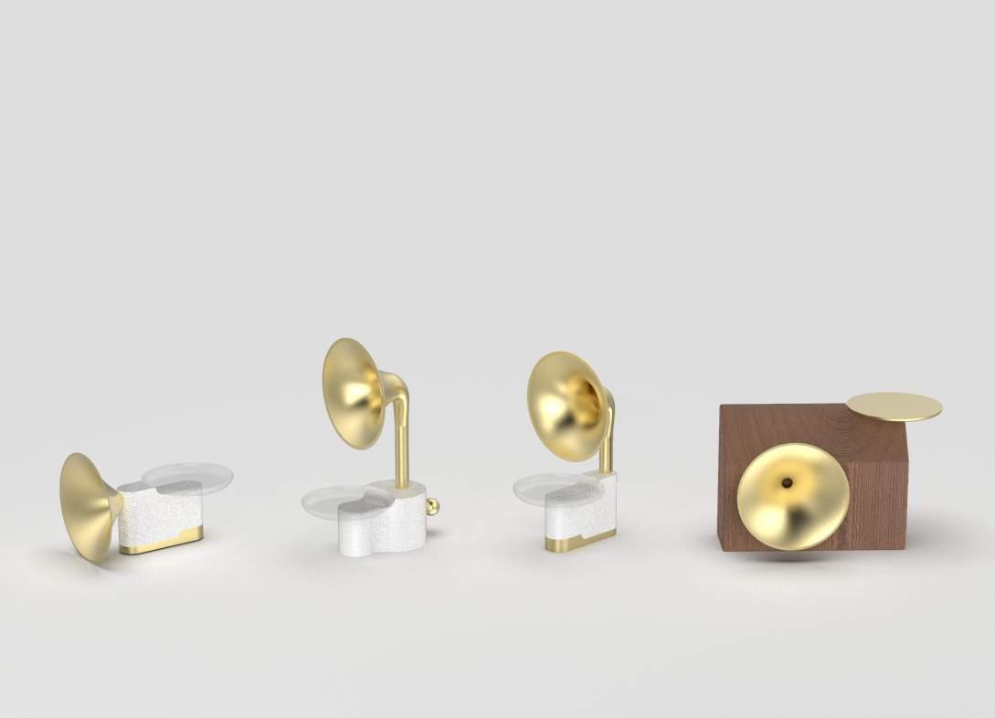 Soundphono is a record and record player collection, a conceptual product that explores the idea of transforming process into sound. The inspiration comes from reading the pre-made texture on the surface of the object through the stylus and transforming it into a record player that plays sound. Each person's unique voice is collected by forging and preserving the texture on the record. The different textures that appear on the record will have a different sound in relation to each other. It is a fun toy for adults and a collector's item with appreciation value.