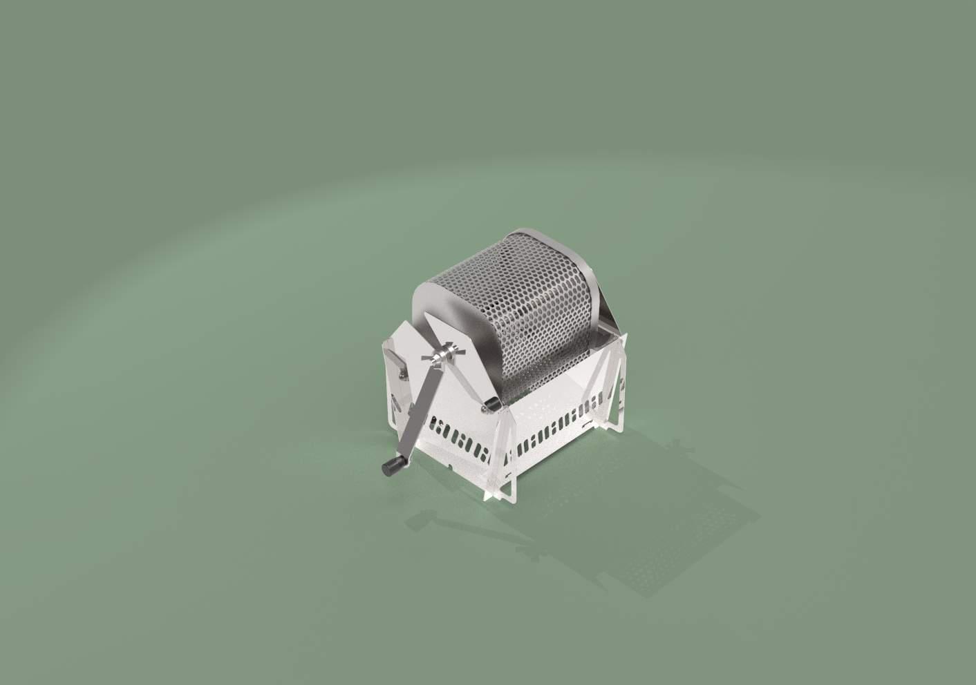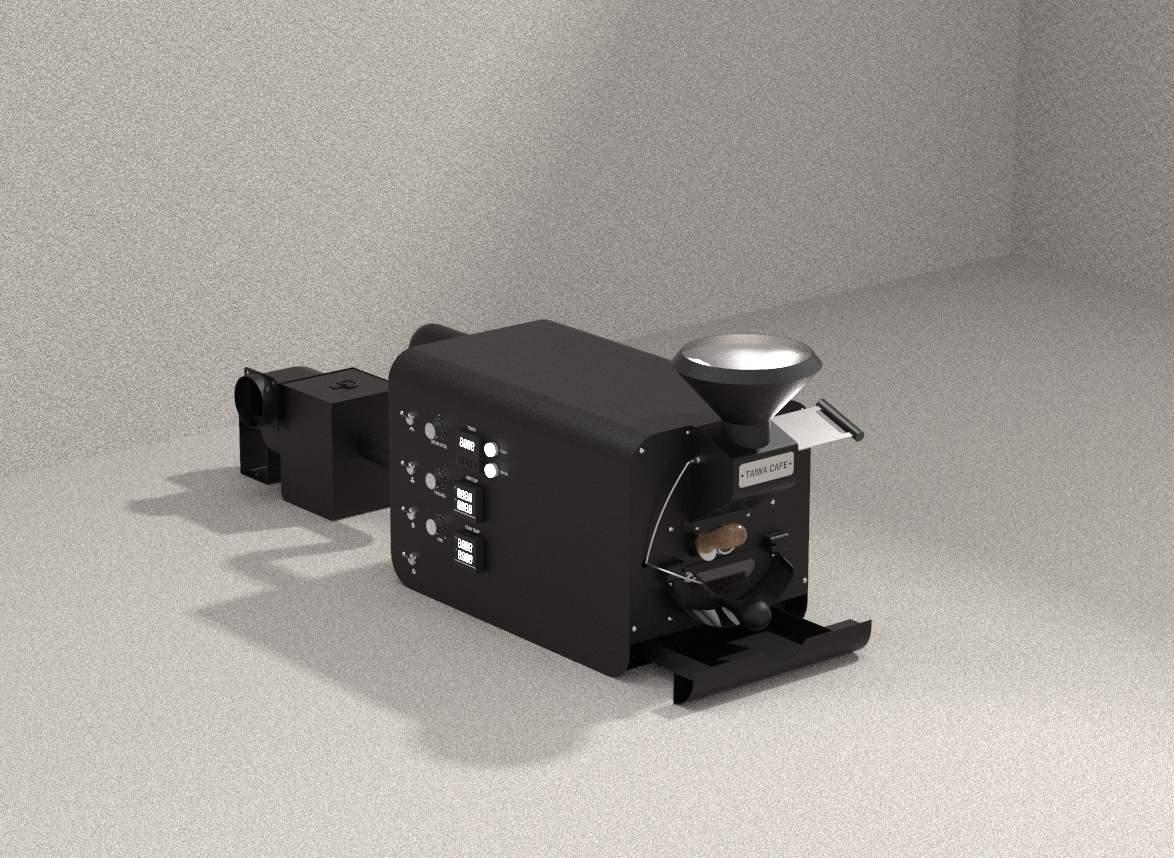 Reffering to the first generation design of coffee roaster, the main structural configuration remains changed, but focuses on presenting the manufacturing and processing characteristics of sheet metal, and wrapping up the internal mechanical components.
