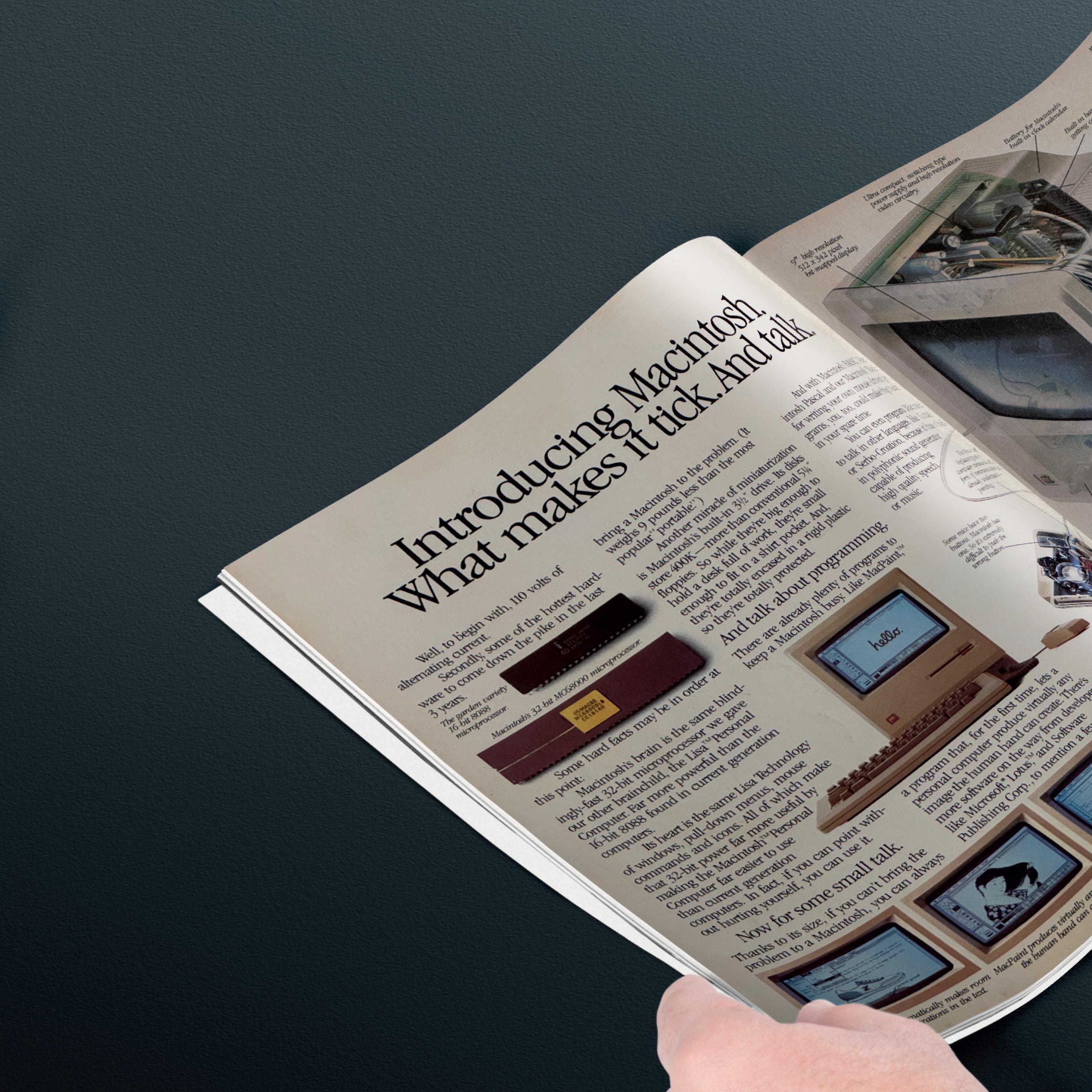 “Introducing Macintosh. And what makes it tick. And talk.” This 1984 Byte magazine ad remains one of Apple’s most memorable. I restored it to its original look, a reminder of the excitement that surrounded the first Macintosh.