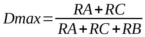 Zum Beispiel gilt für einen Tastgrad von 50 %: 0.5 = R1 / (R1 + R2), or, set R1 = R2. Oder, für 10% Tastgrad: 0.1 = R1 / (R1 + R2), or, set R2 = 0.9R1.