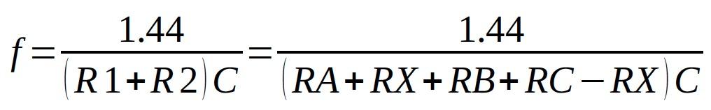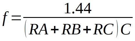 Die Frequenzgleichung für einen astabilen Oszillator kann umgeschrieben werden als