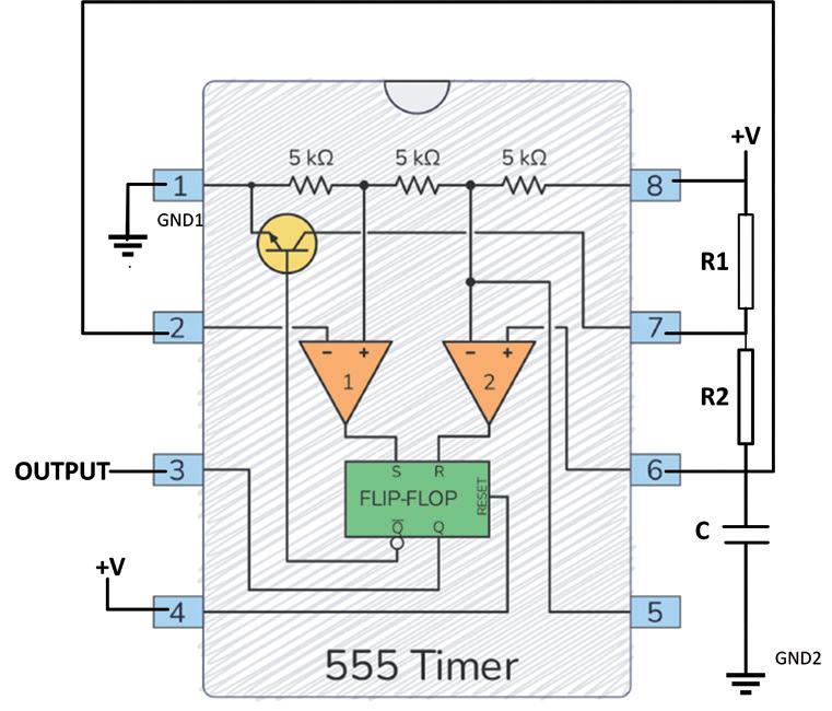 Der 555-Timer-IC, um 1971 von der Signetics Corporation eingeführt, zählt zweifellos zu den beliebtesten analogen integrierten Schaltkreisen, die je produziert wurden. Ursprünglich als „IC-Zeitmaschine“ bezeichnet, wurde dieser Chip über Jahrzehnte hinweg in zahlreichen zeitbezogenen Projekten eingesetzt. Der Chip ermöglicht kostengünstige Designs von monostabilen, astabilen und bistabilen Schaltungen unter Verwendung nur weniger externer passiver Bauelemente wie Widerstände und Kondensatoren. Zusätzliche Anschlüsse stehen für das Auslösen oder Zurücksetzen zur Verfügung. Seit seiner Markteinführung wurden viele neuartige und einzigartige Schaltungen für den kommerziellen, industriellen und privaten Einsatz mit diesem Chip entwickelt. Interessanterweise ist der originale 555Chip auch nach rund 50 Jahren immer noch sehr beliebt und wird in vielen Anwendungen eingesetzt, obwohl die CMOS-Versionen in tragbaren, stromsparenden Anwendungen populärer zu sein scheinen.