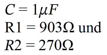 Mit den gegebenen Werten für die Kapazität und Frequenz können wir die Widerstandswerte berechnen. :