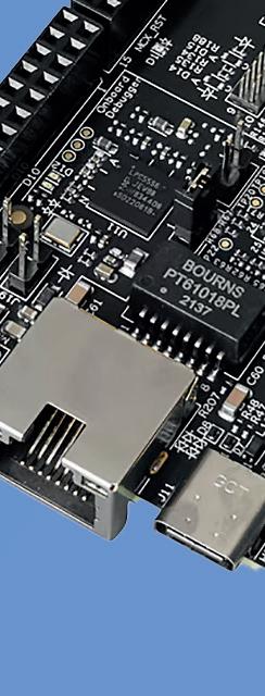 The MCX-N947 Dual Arm Cortex™ M33 microcontroller provides operating performance of 150 MHz. The board is equipped with Flash memory up to 2 MB, optional ECC RAM and external flash memory, which provides adequate capacity for storing data and programs. Additionally, it offers a range of advanced features such as a neural processing unit, PowerQuad, Smart DMA, Micro SD card slot, Ethernet PHY, and HS USB Type-C connectors.