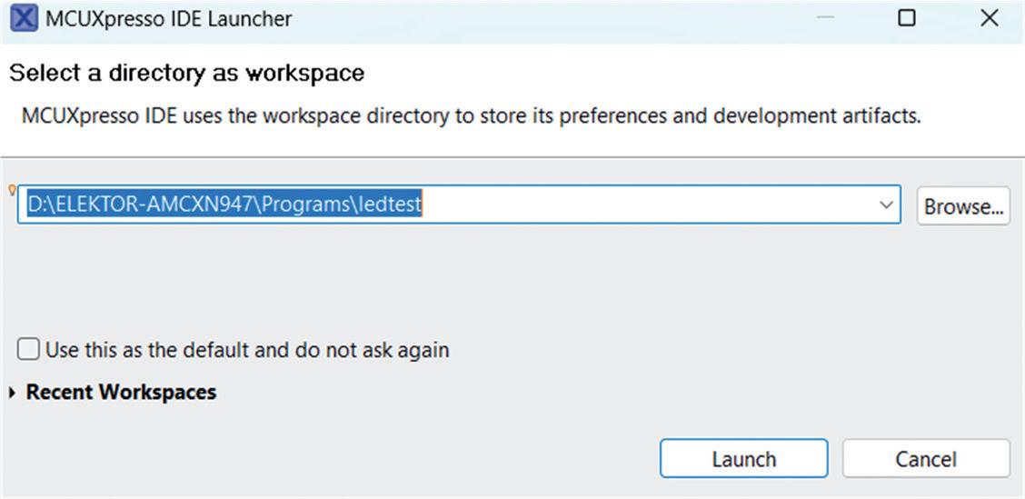 • Create Workspace ledtest (Figure 2.7) and click Launch.