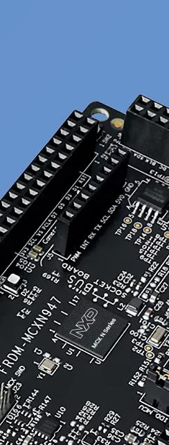 The FRDM-MCXN947 is a compact and scalable development board for rapid prototyping of the MCX N94 (and the N54) MCUs. The board offers industry standard headers for easy access to the MCU's I/Os, integrated open-standard serial interfaces, external flash memory and an on-board MCU-Link debugger.