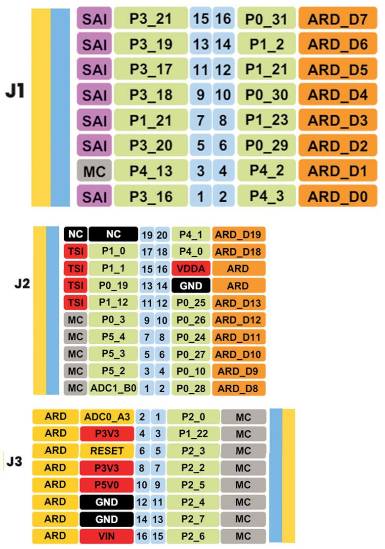 • PMOD, mikroBUS, Arduino, DNP, FRDM connectors