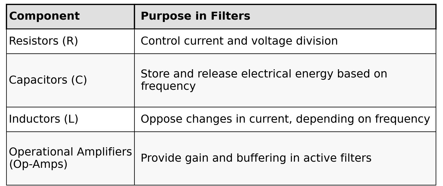 Later in the book, you will learn how the resistor and capacitor work together to create the filtering effect. You will also learn how to calculate the cutoff frequency and how different filters affect different types of signals. For now, it is enough to see that even a very simple circuit can have a big impact on the quality of the information that a system processes.