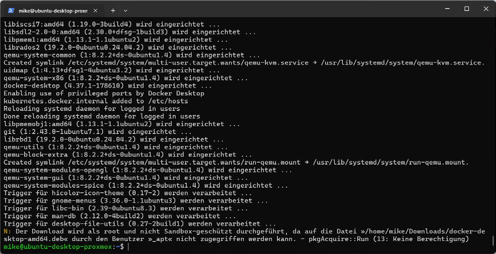 Fügen Sie den Benutzer (hier: mike) der Gruppe docker hinzu.