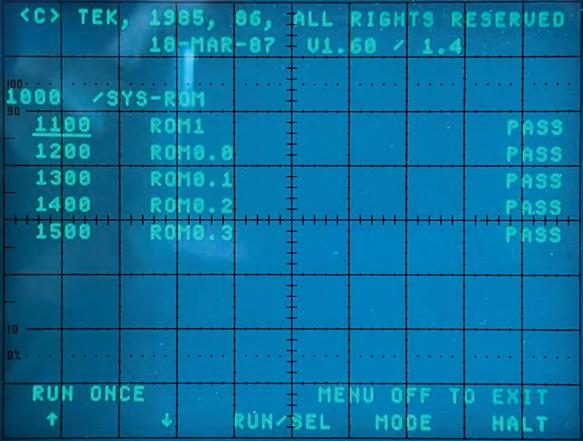 A rich set of diagnostic routines is executed at startup and they can be recalled by the maintenance operator (examples on the right). The impression is that Tektronix wanted to test everything that could be automatically tested. The routines can also be iteratively executed.