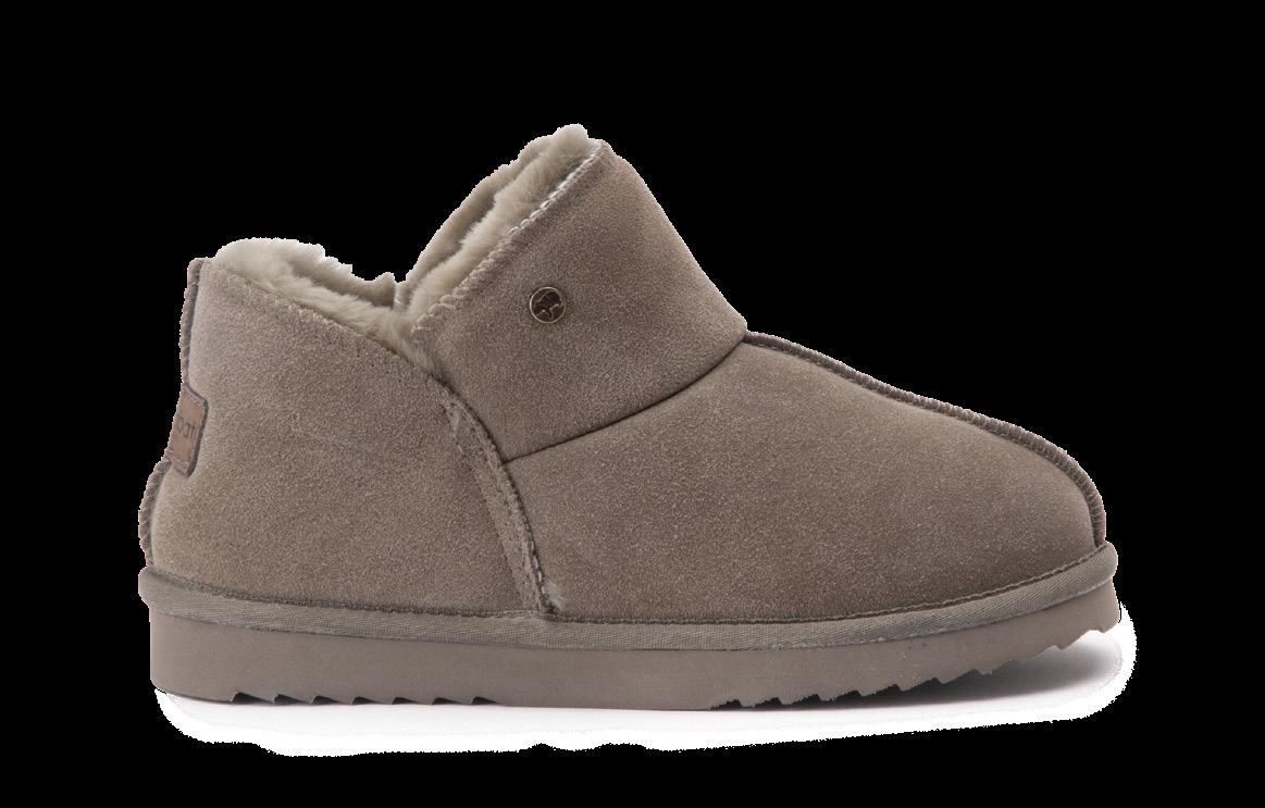 og lengi þótt bera af í þægindum og gæðum. Fóðrið í skónum er búið til úr 100% merino-ull sem er bæði hlý og mjúk. Ytra byrði er úr vönduðu rúskinni og leðri.