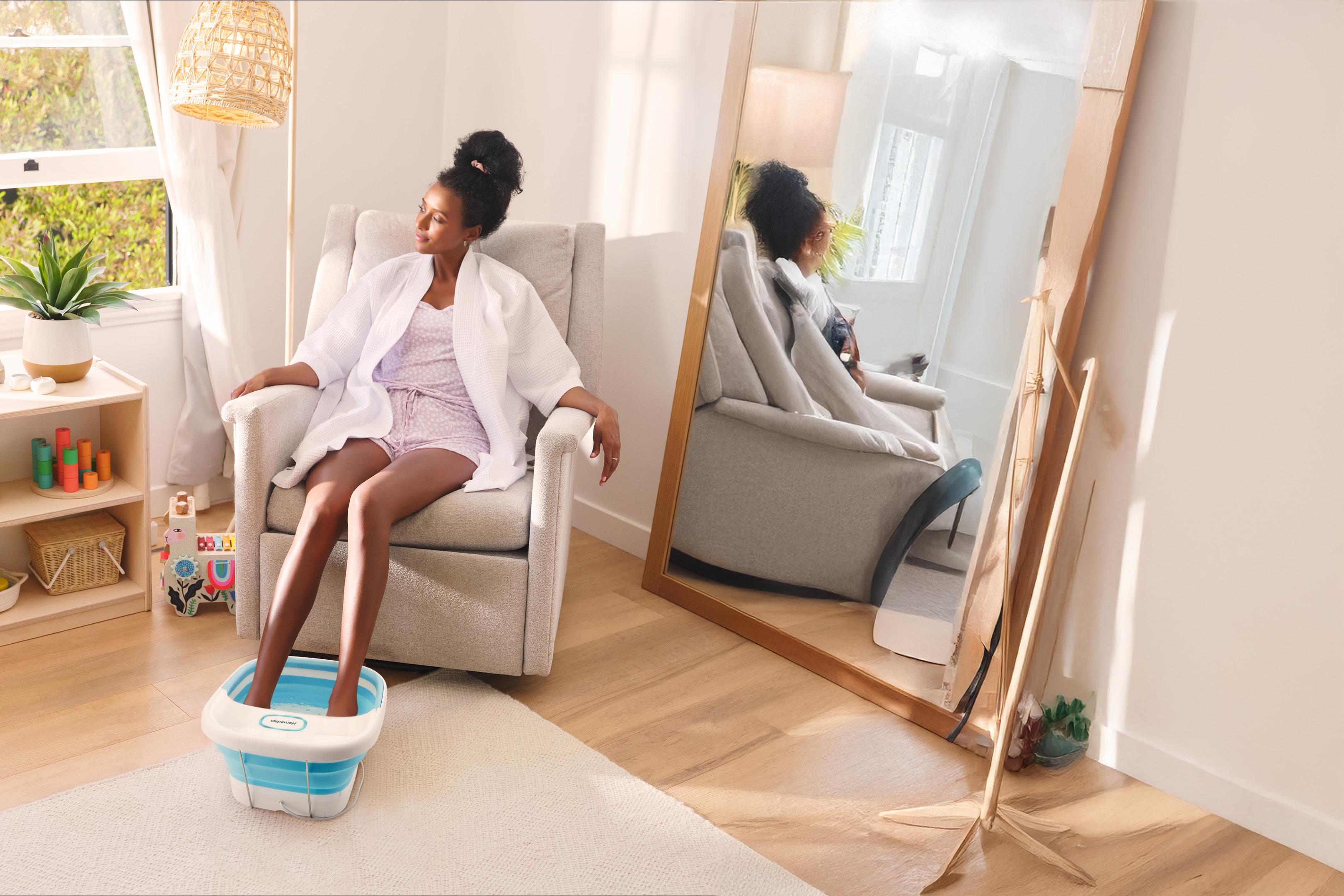 Notalegt fótabað sem heldur hita á vatni. Samanbrjótanlegt þannig að lítið fer fyrir því þegar ekki er verið að nota það. þrýstipunktar í botni sem auka blóðflæði og losa spennu.