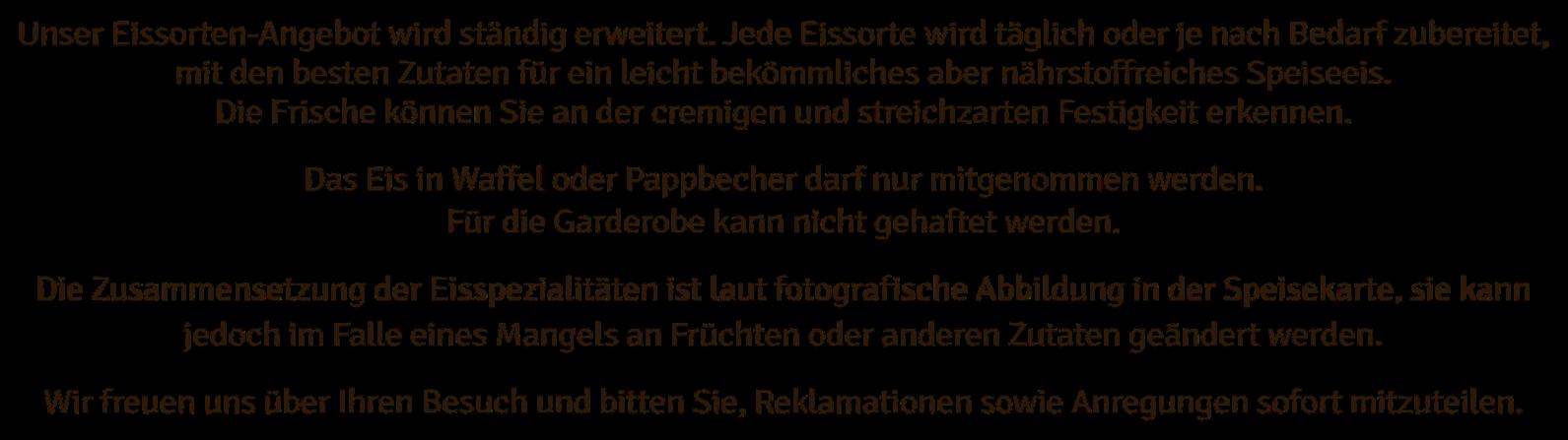 Sehr geehrte Kunden, wir heißen Sie recht herzlich willkommen in unserem italienischen Eisparadies.