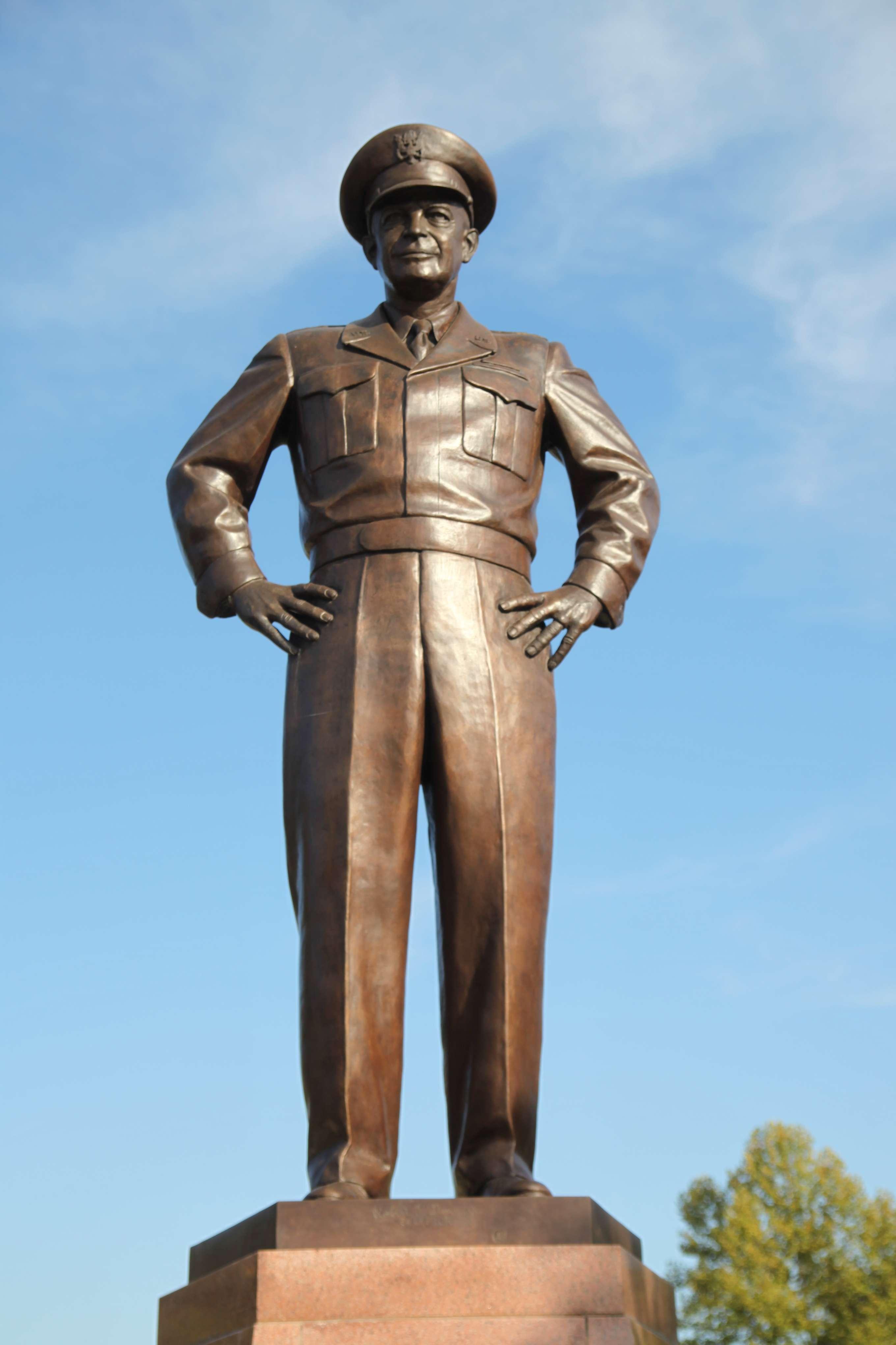 The bronze statue of General Eisenhower in the center of campus, and the Pylons on the east end of campus are great spots for class photos and are used in our “Flat Ike” program.