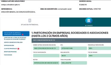 En su declaración de intereses publicada por el municipio que gobierna la panista Alejandra Gutiérrez, Enrique Avilés Pérez reportó que sólo es dueño de la empresa SM3 Comunicación S.A. de C.V., pero dejó fuera a Publicaciones en Movimiento S. de R.L. de C.V. y a Corporativo Mite Dak S.A. de C.V.