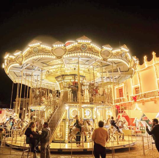 Durante más de un mes, la ciudad despliega un circuito de túneles luminosos, villas te máticas, atracciones mecánicas y rincones gastronómicos que invitan a explorar con calma cada espacio. El ambiente festivo se intensifica conforme avanza la tarde, cuando la iluminación al canza su máximo esplendor.
