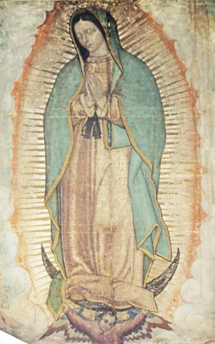 Figura alada que une túnica y manto, señalando la conjunción de cielo y tierra y evocando a Juan Diego