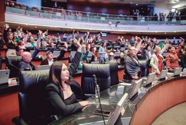 Detalló que en este año se realizaron 37 sesiones ordinarias, 122 acciones con pueblos originarios, 20 reuniones, 87 actividades con movimientos sociales, 96 sesiones culturales, 59 acciones de comunicación, 11 campañas digitales y nueve “jornadas naranjas”, de concientización y prevención de la violencia contra las mujeres y las niñas. Con la convicción de “construir comunidad”, Díaz Polanco dio cuenta de que se realizaron 14 asambleas masivas como