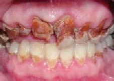 Fig 11 — Intraoral wound dehiscence with necrotic bone exposure