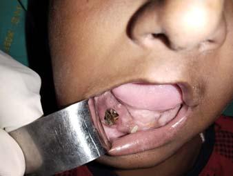 Fig 2 — Intraoral pus discharge from right alveolar segment