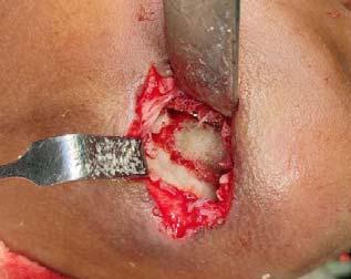 Fig 9 — Necrotic bone and sequestrum debrided till exposure of fresh bone