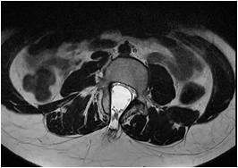 (1)Spina bifida is seen at L3 and L4 vertebral levels. Low lying cord is seen with herniation of cord and meninges through the defect in posterior elements , however it is covered by overlying subcutaneous tissue and skin. These findings are suggestive of closed spinal dysraphism (lipomyelomeningocele).