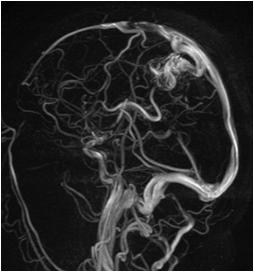 (1)An intracranial Arteriovenous Malformation (AVM) is seen composed of enlarged feeding arteries, a nidus of vessels and draining veins. In this case, the feeding arteries are seen arising from cortical branches of middle cerebral artery and draining veins are seen draining into superior sagittal sinus through cortical veins.