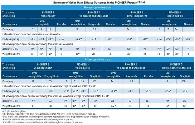 Table1 — Overview of PIONEER Trials for Oral Semaglutide