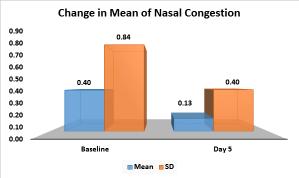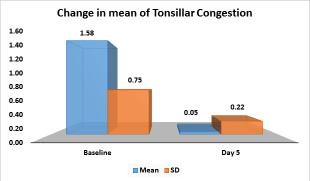 Oral lincomycin 1000mg once daily for 5 days significantly reduced the mean symptom scores for headache (p<0.05), throat pain (p<0.05), odynophagia (p<0.05) and sinus tenderness (p<0.05). Further, the mean scores for nasal (p<0.05) and tonsillar congestion (p<0.05) formation were completely reduced post-lincomycin treatment (Fig 1).