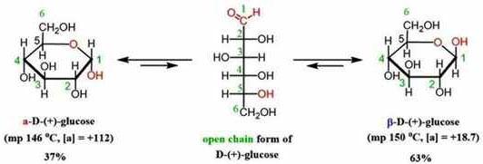 Both alpha- and beta-forms are closed ring forms with a few exposed least reactive hydroxyl groups (Fig 1). Oral carbohydrate consumption leads to a buildup of blood level of these two forms, finally settling to a mixed form mentioned.This interchange takes place within aqueous phase of blood where alpha-d-form mutarotates to the beta-d-form and vice-versa finally settling to a racemic mix of the two. The process, as mentioned, is known as mutarotation.
