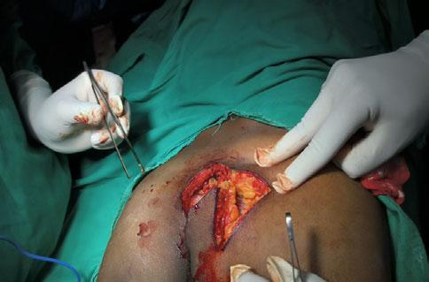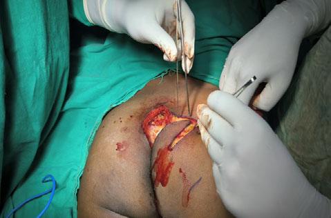 Fig 5 — Incision of the rhombus ABCD and dissection of subcutaneous fat