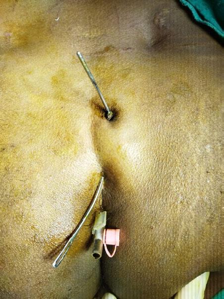 14.28% (n=2) patients had cut through of sutures during the period of wound healing, that was managed conservatively. Out of those patients who had cut through of sutures, one had single sinus tract and the other had multiple tracts (Fig 12).