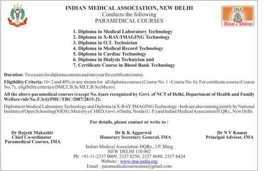 Head office: Indian MedicalAssociation, IMAHouse, Indraprastha Marg, New Delhi - 110 002 Telephones: +91-11-2337 0009, 2337 8680, Fax: +91-11-2337 9470, 2337 0375, Telegram: INMEDICI, New Delhi 110 002, Email: hsg@ima-india.org; Website: www.ima-india.org