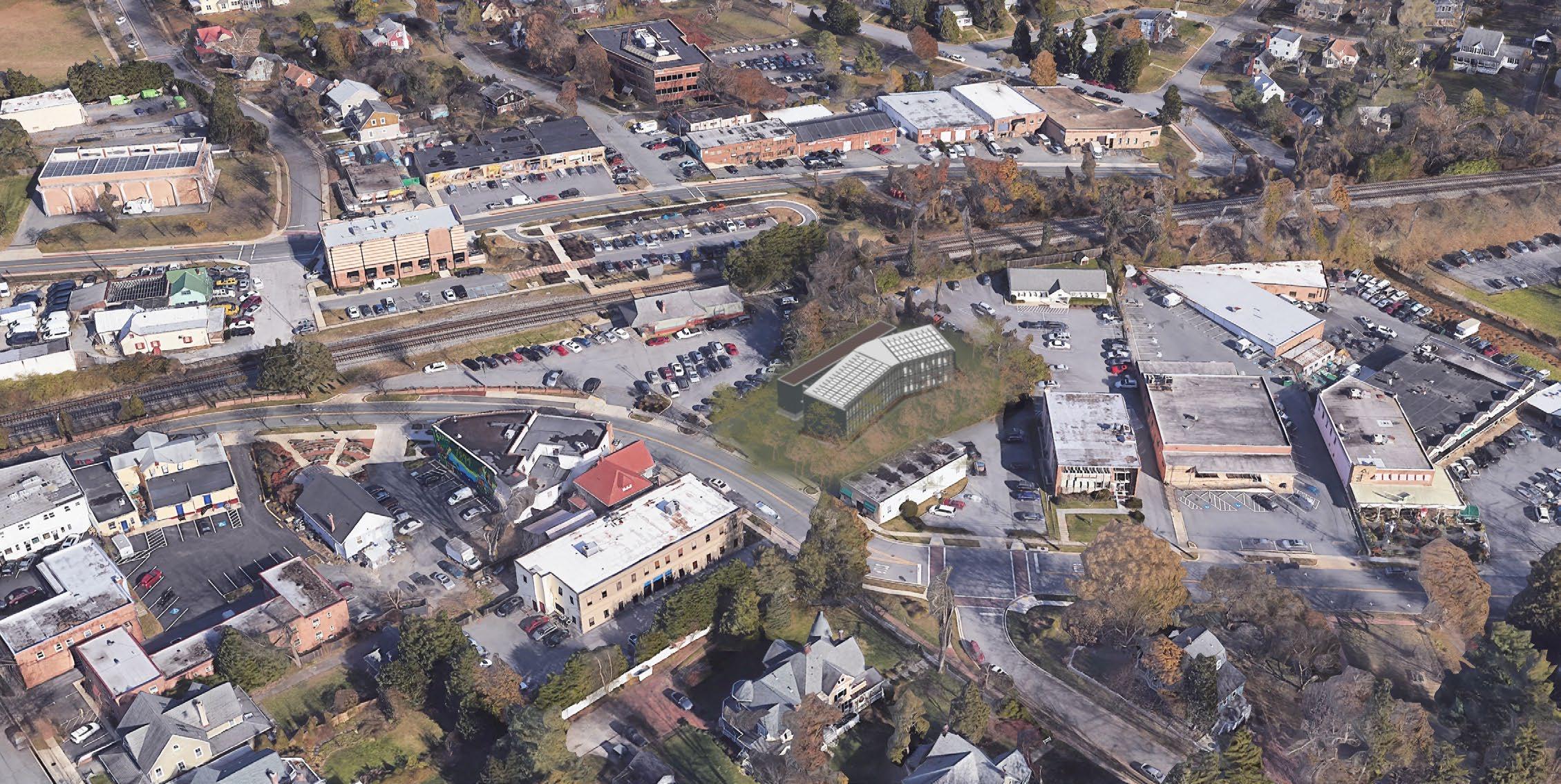 The project was inspired by natural geological formations of sedimentary rock native to Maryland’s river valleys and seashore. Limestone and sandstone are weathered into striking topographical features revealing distinct layers of the past. Much like a water carved canyon, these sedimentary layers are echoed in the floors of the building, each level takes on its own identity by offsetting and protruding from one another, moves that are accentuated through the use of prominent soffits and fascias. The building is centered around two tangential circles, which acting together give the appearance of the building being peeled apart, further revealing the layered nature of the building.