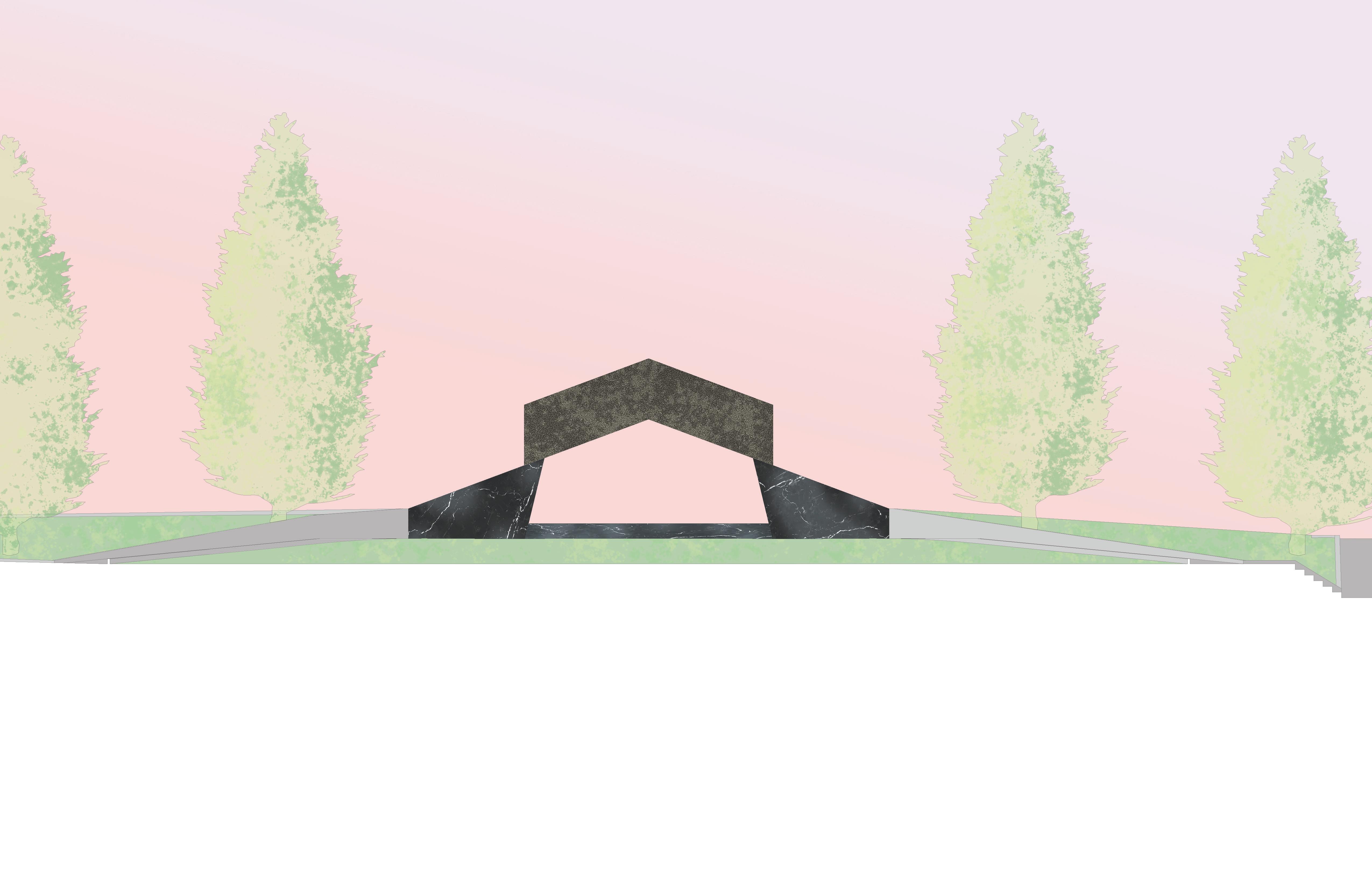 The form is open to interpretation while also symbolic and everlasting. The shape at the core of the design is the chevron. Historically used through all branches of the military to denote rank, the abstracted form can also be interpreted as an open book, representative of the scholar. Throughout the monument, the shapes intersect and interact, tangibly communicating the idea of two lives coming together.